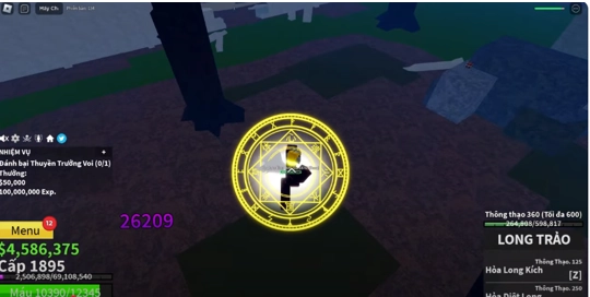 Sau đó bạn đi theo lối mòn ra vị trí của Đội Trưởng Voi level 1850 xuất hiện và đánh bại nó.