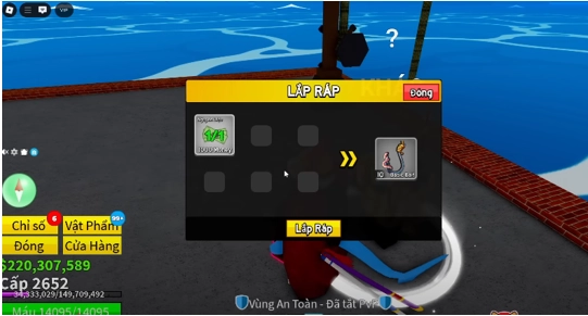 Ở mục “Buy Bait” nghĩa là mua mồi câu và bạn bấm vào lắp ráp là bạn sẽ mua được mồi câu cơ bản. Mỗi lần lắp ráp bạn sẽ mua được 10 mồi câu cơ bản và mỗi lần mua bạn sẽ tốn khoảng 1000 beli.