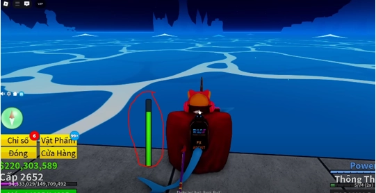 Để câu cá thì bạn chỉ cần Click chuột vào thanh lên xuống, thanh này thể hiện là cần câu của bạn sẽ quăng ra xa hay gần.