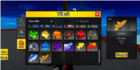 Ví dụ: Như trong phần Vật Phẩm mà có những con cá X2 hoặc X3 thì nó sẽ mua, còn những con cá mà bạn vừa mới câu lên được đựng trong túi đồ thì nó sẽ không mua nhé.