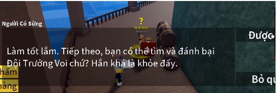Sau khi đánh bại thì bạn quay về gặp NPC nhận nhiệm vụ mới là đánh bại Đội Trưởng Voi.