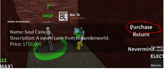 Bạn phải trả cho NPC này 750k beli để mua cây Soul Cane.
