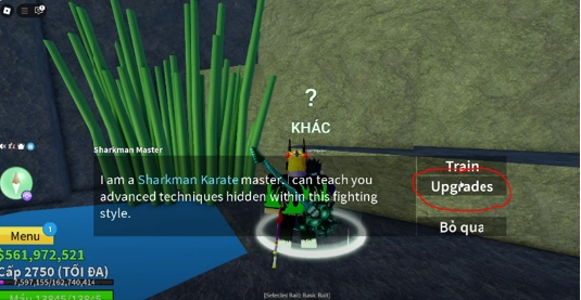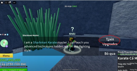 Tiếp theo bạn tìm gặp NPC Sharkman Master nói chuyện và học nâng cấp võ người Cá V3.