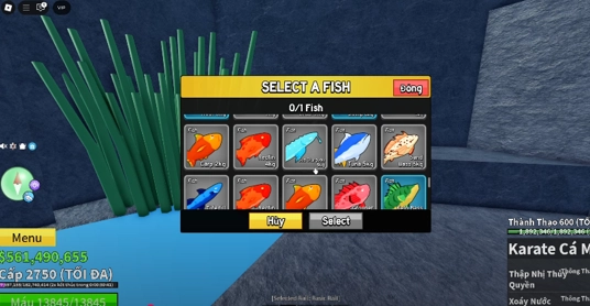 Sau khi bấm bắt đầu nó sẽ bắt bạn chọn 1 con cá và bạn có thể chọn cá nào cũng được.