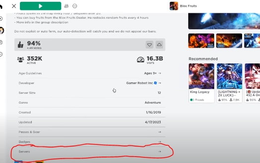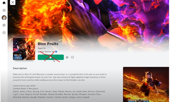 Tiếp theo sẽ dẫn bạn vào trang của Blox Fruits nhưng mà hãy nhớ là bạn không được ấn vào mũi tên vì nó sẽ đưa bạn truy cập vào Sever thường.