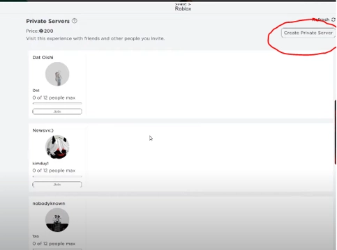 Nó sẽ dẫn bạn đến 1 trang server VIP và bạn hãy ấn vào “Create Private Server” góc bên phải.