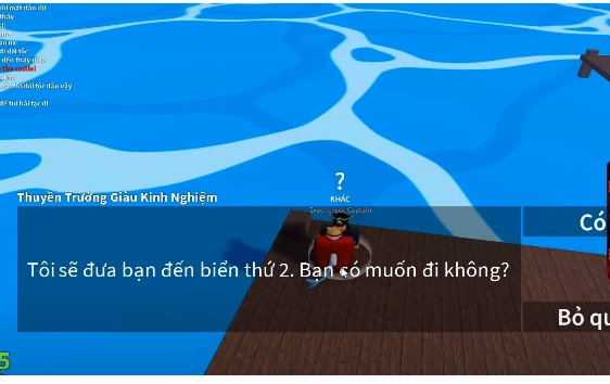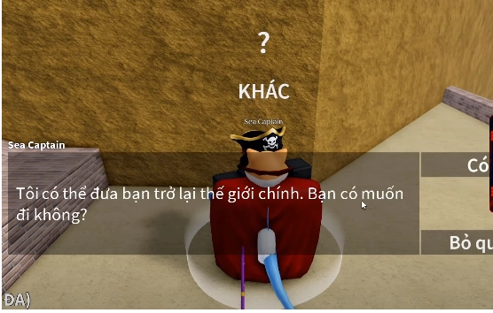 Sau khi đã quay về Sea 2, bạn hãy tìm NPC Sea Captain – người này thường đứng gần khu vực bạn vừa xuất hiện khi dịch chuyển về. Hãy bấm nói chuyện với ông ấy. Khi được hỏi có muốn quay lại Sea 1 hay không, bạn chọn "Có". Lúc này bạn sẽ trở lại Sea 1 một cách dễ dàng.