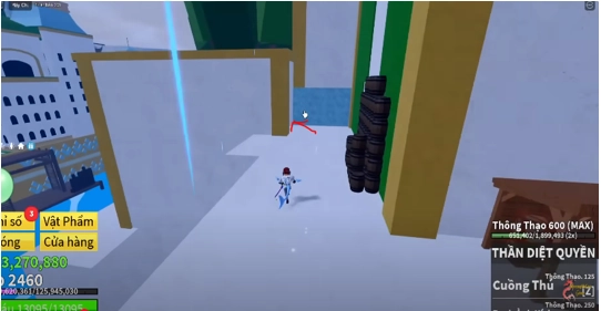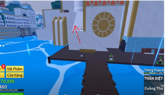 Sau khi thu thập đủ nguyên liệu thì bạn quay về đảo Tiki, ở bến tàu thì bạn di chuyển lên và check sang hướng bên trái 1 chút.