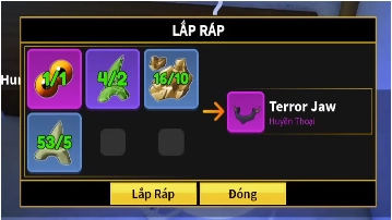 Sau khi bạn đã có đủ nguyên liệu bấm vào lắp ráp bạn sẽ có được phụ kiện Terror Jaw.