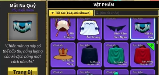 - Mặt nạ quỷ là vật phẩm giúp cho người chơi tăng 35% tốc độ chạy, 500 năng lượng, 10% ( 2,5% cho NPCs ) life leech cho các đòn tấn công cận chiến