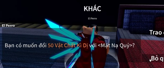Sau khi vào bên trong, các bạn hãy đi về phía bên phải và tìm căn phòng mà bên trong có chứa NPC tên El Perro. Tại đó NPC yêu cầu 50 vật chất kỳ dị để đổi lấy mặt nạ quỷ.