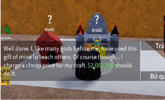NPC này sẽ yêu cầu bạn trả cho nó 2 triệu Beli để hoàn thành việc thức tỉnh tộc V3.
