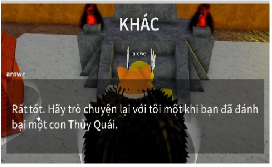 Bạn nói chuyện với NPC Arowe , ông sẽ giao cho bạn nhiệm vụ đánh bại Thủy quái.