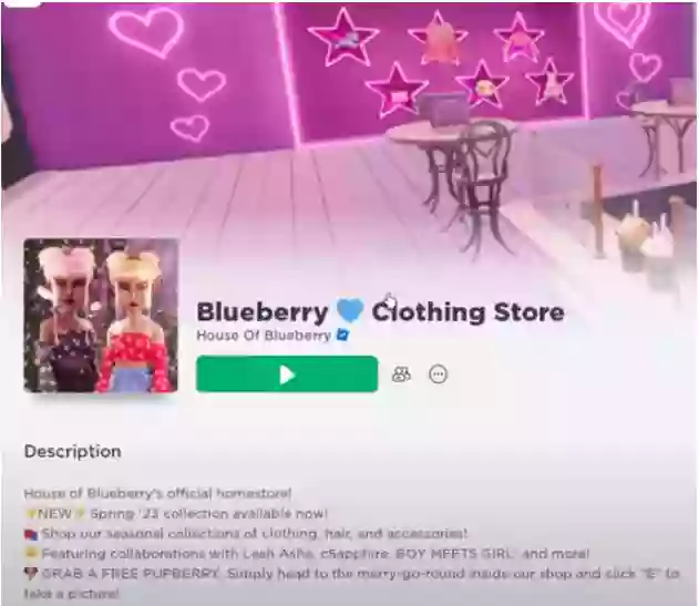 Trước hết người chơi cần vào trang chủ của Roblox, vào phần tìm kiếm gõ tựa game “ Blueberry Clothing Store”.