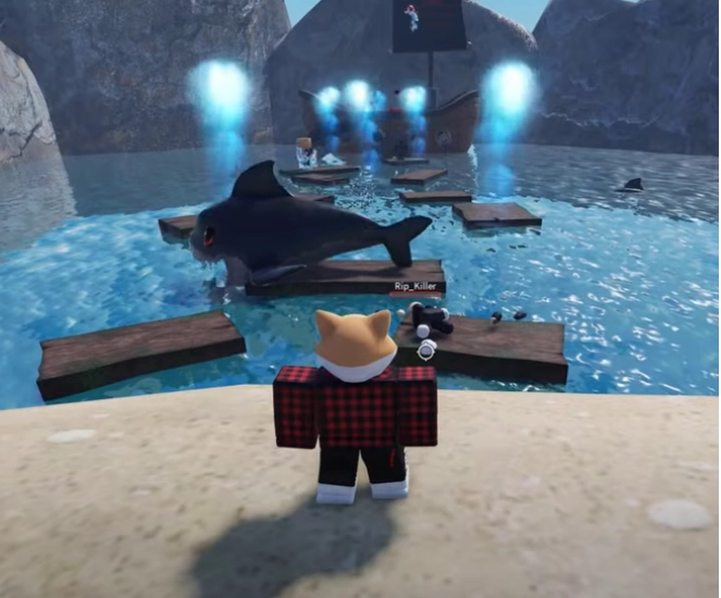 Khi đã đặt chân lên chiếc thuyền chính là lúc các bạn đã thành công sở hữu item cá mập con.