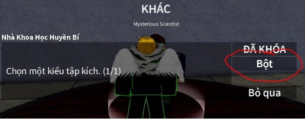 Sau đó bạn dịch chuyển về Pháo Đài Trên Biển và nói chuyện với NPC nhà khoa học huyền bí và chọn “nâng cao” sau đó chọn “bột” là xong.