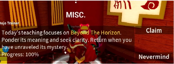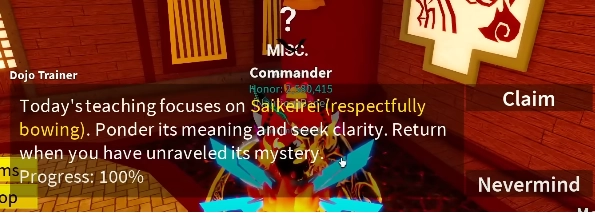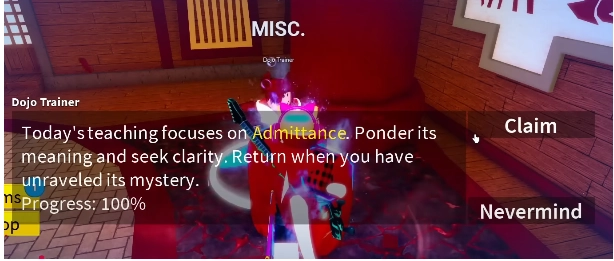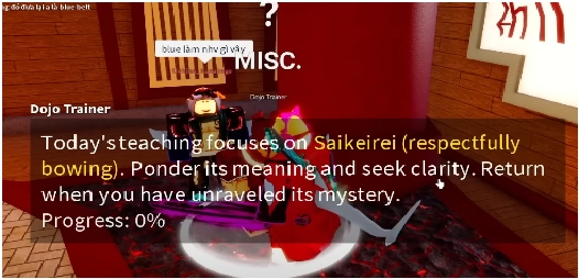 - Cày lên 500 mastery để đủ điều kiện nói chuyện với NPC Dojo Trainer