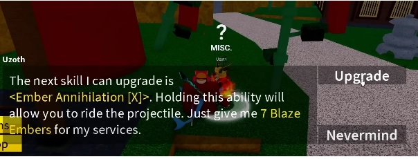 Tiếp theo là chiêu X, bạn tiếp tục nói chuyện NPC để Upgrade chiêu X và bạn cần 7 Blaze Embers để nâng cấp nhé.