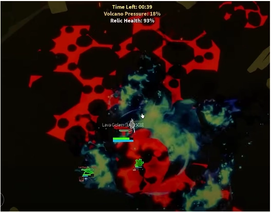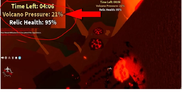 Bạn chỉ có 5 phút để phòng thủ, ở dòng thứ 2 là độ phun trào của núi lửa, và không được để nó lên 100%.