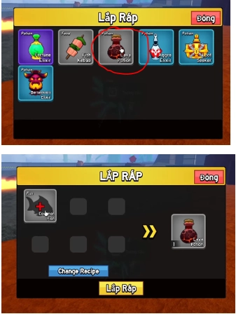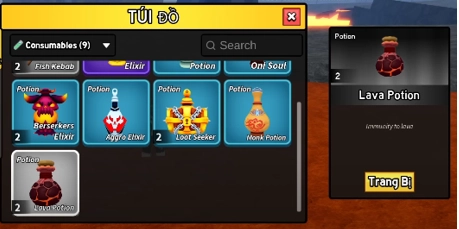 Sau khi ấn vào tiếp tục chọn Lava Potion.