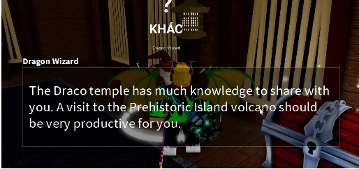Trước khi đi tìm đảo Núi lửa để hoàn thành nhiệm vụ thì bạn quay lại tìm gặp NPC Dragon Wizard để xác nhận lại chính xác nhiệm vụ.