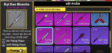 Đao Bisento là một thanh kiếm có độ hiếm là Huyền Thoại, cây kiếm này có độ sát thương khá cao khi được nâng cấp lên v2. Bạn hãy theo dõi bài viết sau để lấy được kiếm Bisento v2 nhé.