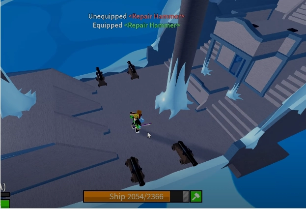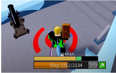 Khi thuyền của bạn bị hỏng hoặc mất máu, hãy nhấn vào biểu tượng cái búa màu xanh để kích hoạt rồi tiếp tục ấn giữ thuyền thì sẽ tiến hành Skill sửa thuyền.