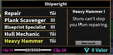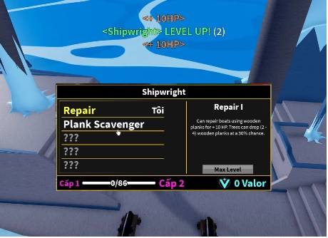 Vậy là bạn đã học xong skill sửa thuyền. Bạn sẽ có 2 nội tại chính là Sữa chữa và Hồi máu cho thuyền.