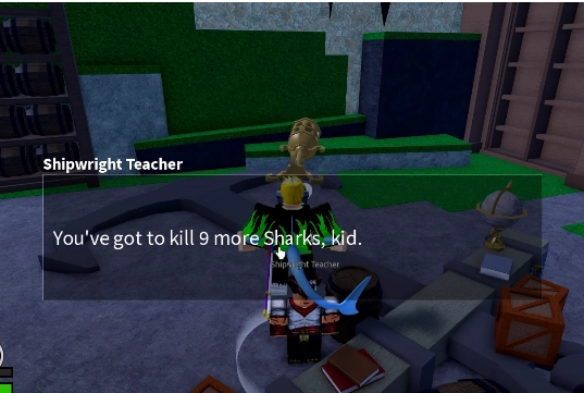 NPC sẽ yêu cầu bạn tiêu diệt 20 con cá mập con thì bạn mới có thể nói chuyện tiếp được với nó.