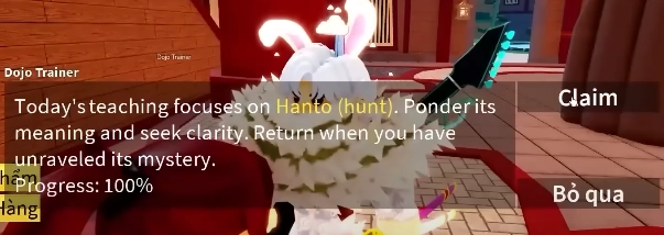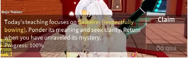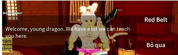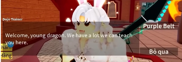 - Khi bạn tiêu diệt được 3 tên thì bạn quay lại NPC Dojo Trainer để trả nhiệm vụ và nhận Đai Tím nhé.