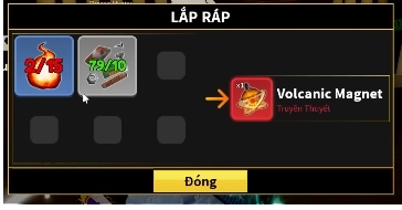 Sau khi nhặt đủ nguyên liệu thì bạn bấm vào Lắp Ráp để chế tạo ra Volcanic Magnet.