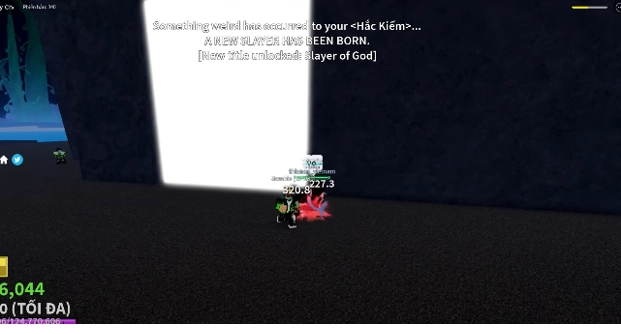 Sau khi ấn thì sẽ có 1 bức tường sáng lên, vậy là bạn đã thức tỉnh xong cây kiếm Yoru lên V3.