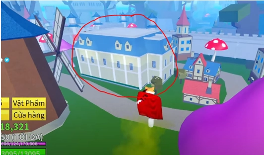 Tòa nhà này sẽ có màu trắng sữa và mái màu xanh, khi đi vào đó bạn sẽ gặp NPC Random trái ác quỷ.